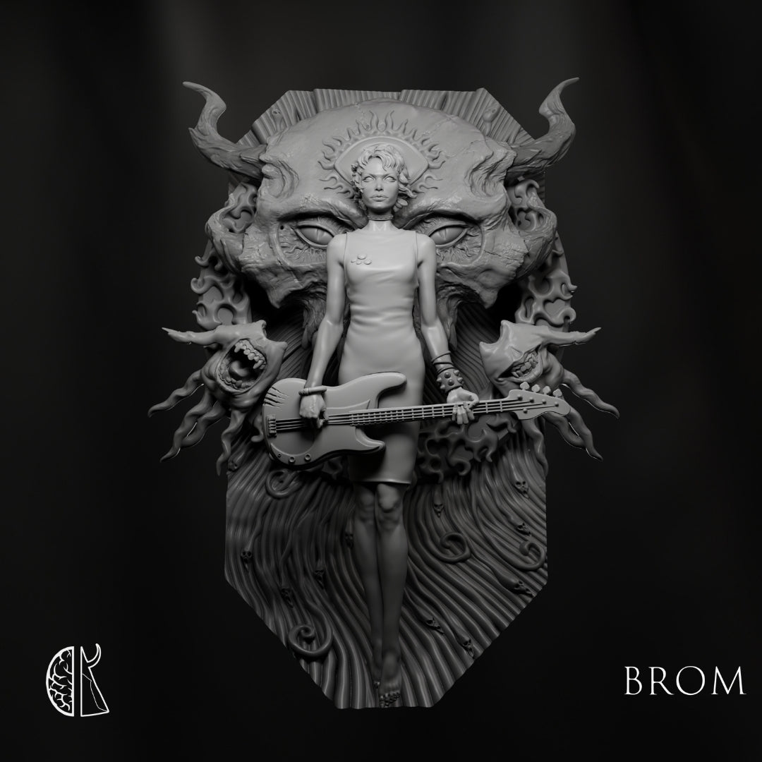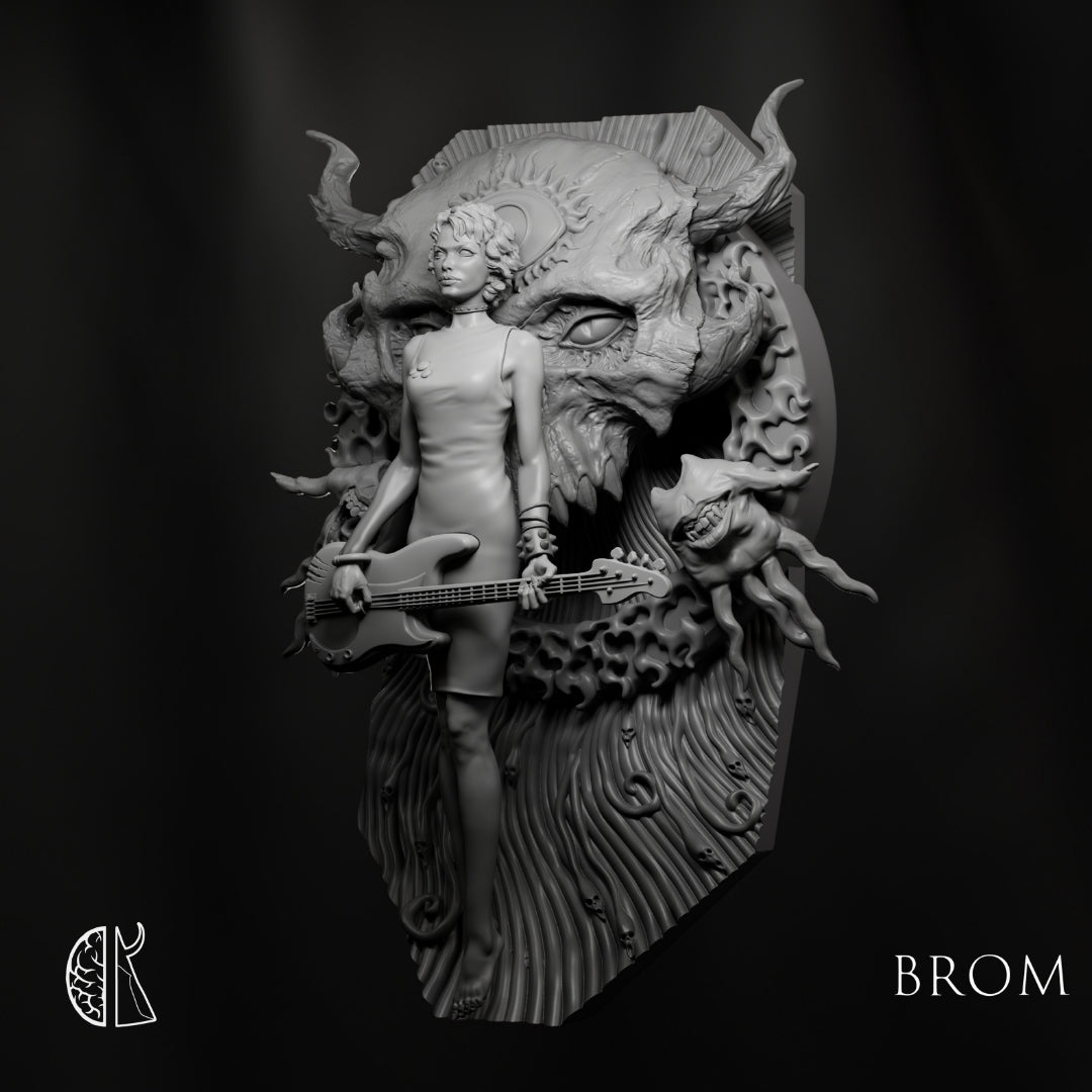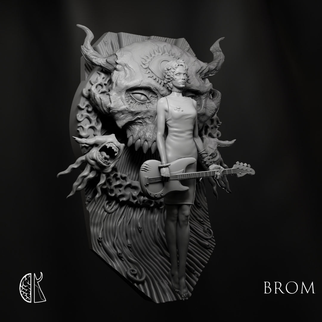 Art: Gerald Brom Sculptor: James W. Cain Scale: 1:20 / 90mm Scale Size base to top: Figure height 90mm - Background height 110mm Material: TIER LEGACY - Resin Cast